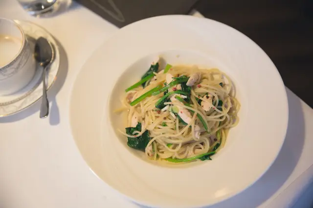 是不是價位非常誇張!!超便宜!!湯汁收的很乾的義大利麵,柚子胡椒很開胃,義大利麵條帶著麵芯Q度,很好吃