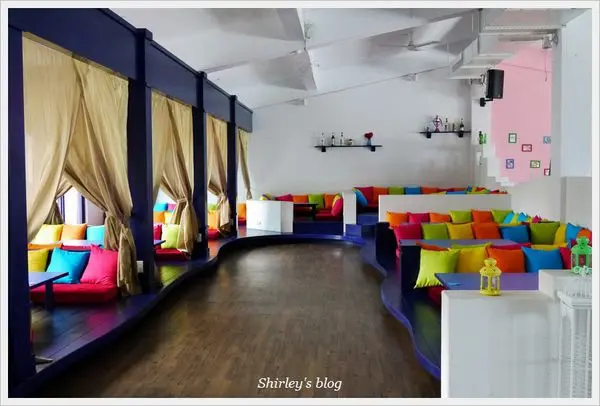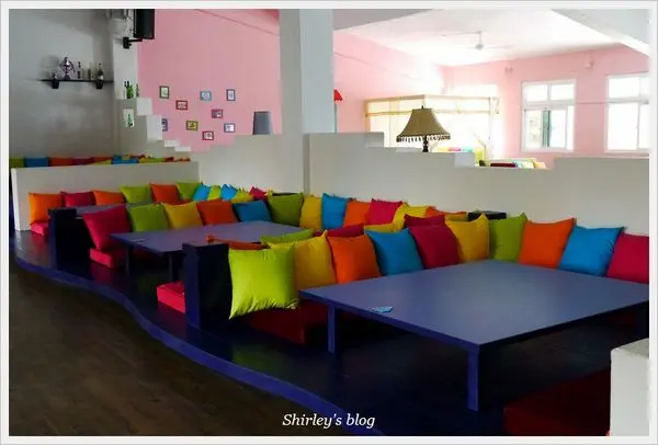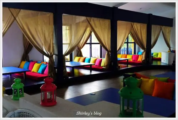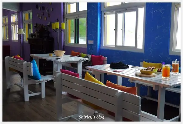 考量到用餐方便,我們選坐白色木桌椅,高度較為合適