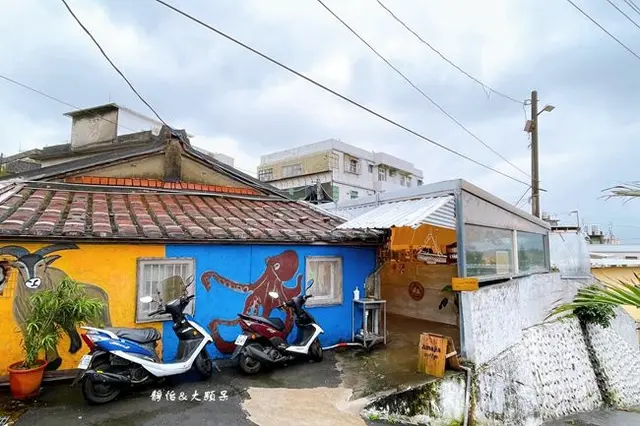一旁的黃色及藍色彩繪處就是阿嬤家咖啡廳,距離真的很近,走幾步路就到了