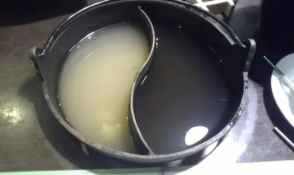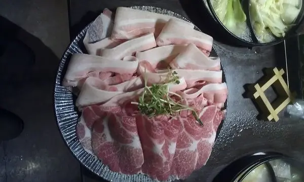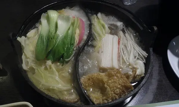 這次體驗的是東北酸白菜鍋、綜合肉片鍋各一份,店家提供的湯鍋是鴛鴦鍋,一邊是白菜鍋的湯底,一邊是海鮮的湯底