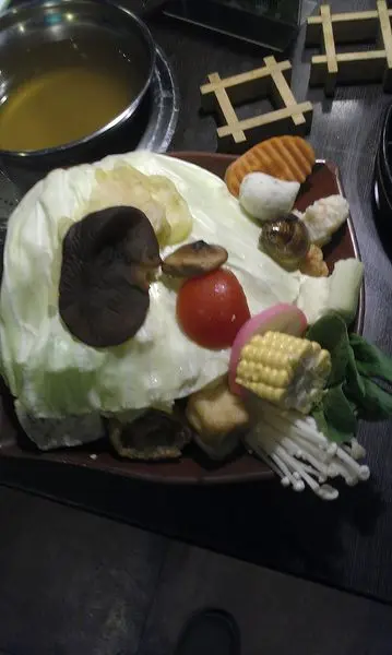分別把菜盤裡得新鮮菜餚放進鍋哩,滿滿的一鍋好料,光看就有一種的暖洋洋的感覺!