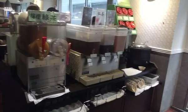 這式飲料區,有冷飲和熱飲可以自由選擇飲用!