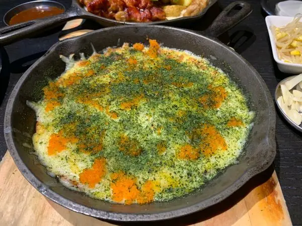 [ 起司魚卵薯片燒180元] 魚卵焗烤起司的組合 味道也是有一點偏奶 因為今天烤肉炸雞裡面都已經有起司了 再吃到這一道的時候覺得有點太膩了....