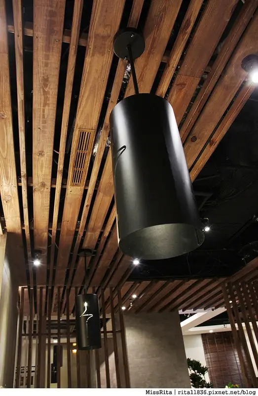 挑高的設計,灰色地板和木頭裝飾,很有日式和風的感覺