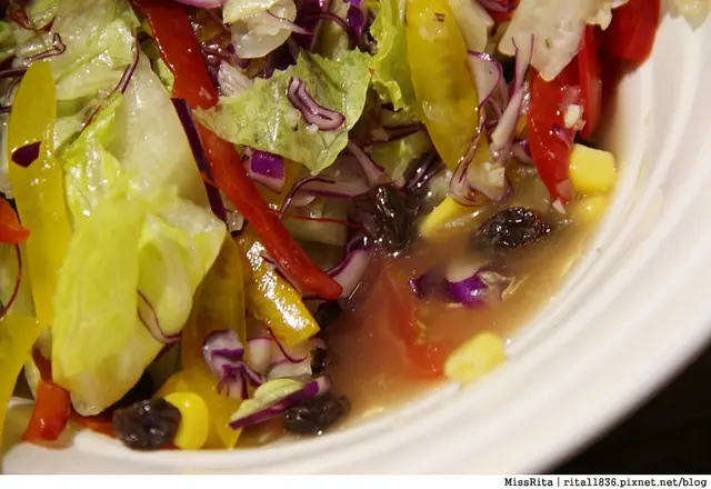 生菜沙拉搭配清爽的油醋,吃起來比較沒有負擔