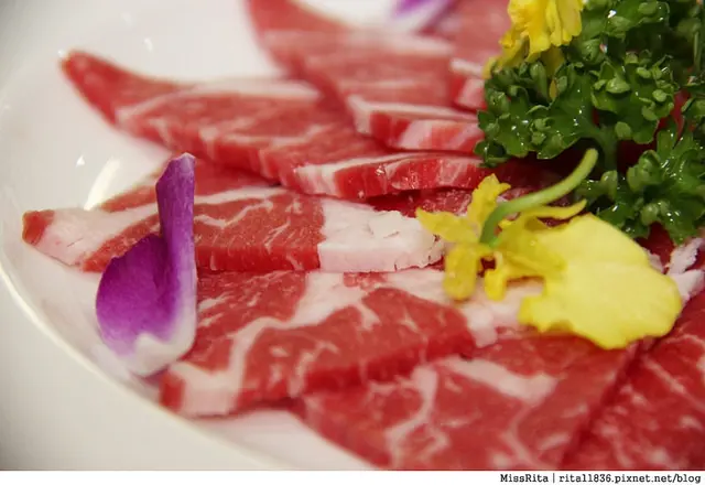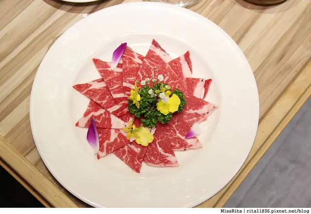另外一個牛肉是霜降牛,比起安格斯較薄了些