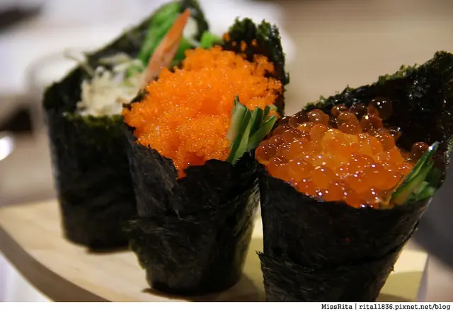 ▲ 手捲(甜蝦蘆筍$60、黃金蝦卵$60、鮭魚卵$120)