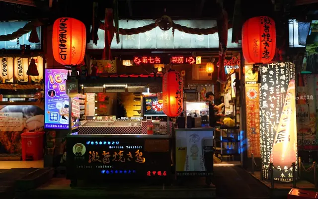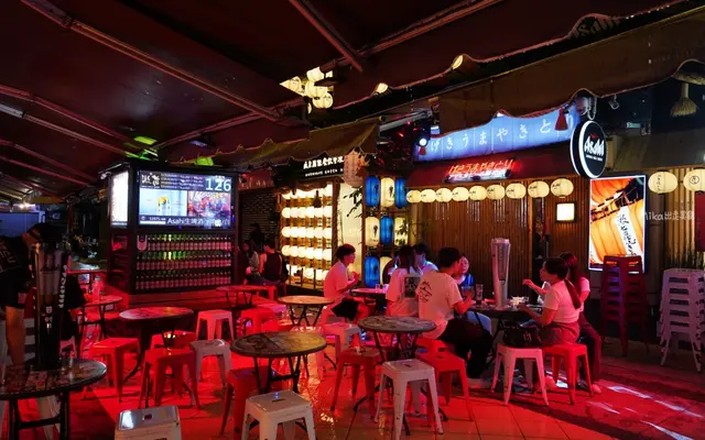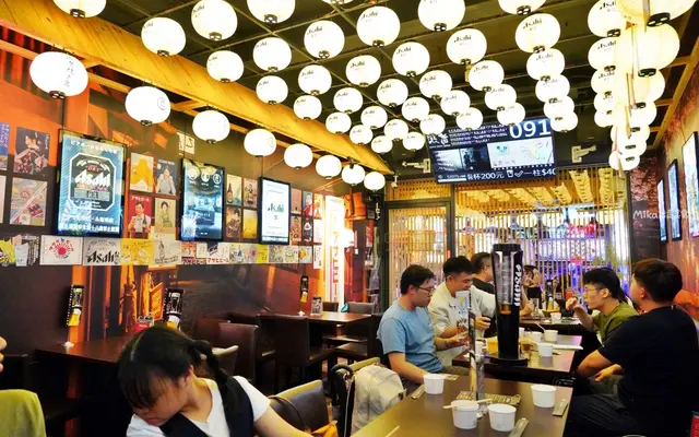 燈光時紅時綠,還有大小燈籠點綴,有日式居酒屋氛圍