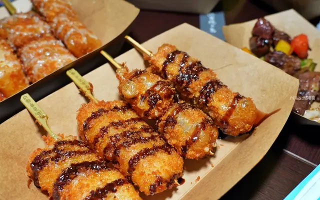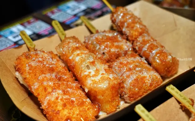 路邊攤起家,現在可以說是中部最強 露天串燒居酒屋店無誤!目前在台中有兩家直營店,總店更是直接包下整個商場的露天空間,現在還有冷氣包廂區,更適合我這種怕熱的人。這裡的串燒很有創意,包麻糬、水果等..各種創意混搭,後來又多了串炸,炸麻糬、年糕、水果等…很會玩。