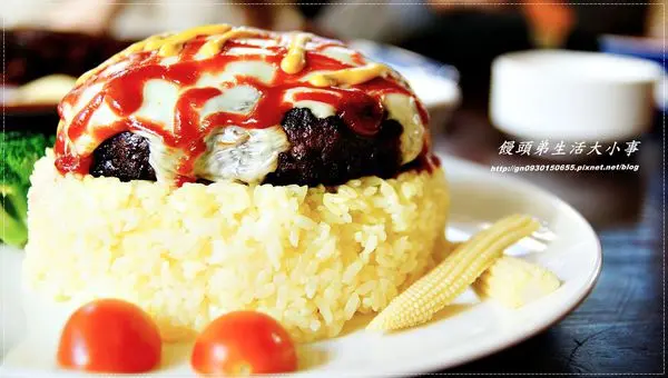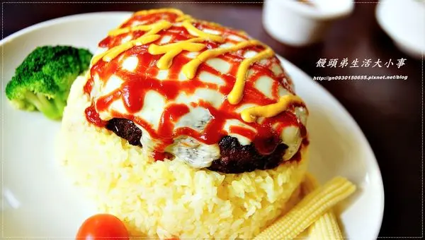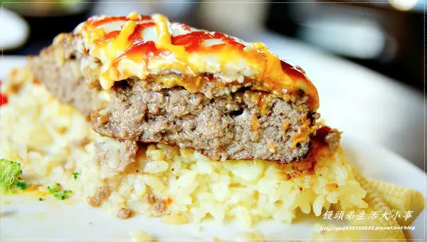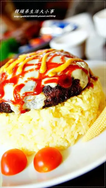 漢堡肉吃起來很鮮嫩多汁,飯粒在根醬汁融入一起吃更有味道也很濕潤