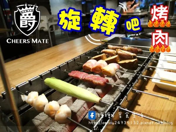 想要吃燒烤,大家第一個想到的就是自己動手烤的燒烤吃到飽,或是師傅們烤好的串燒那如果將兩個者結合,來個自己動手烤的串燒如何 這次帶大家來到這間超有趣的爵 旋轉串燒 碳烤CheersMate串燒店不僅自己烤串燒,最厲害的是,烤肉時不用去轉動他,也不怕會烤焦 店家介紹 遠從英國留學回來的老闆,將道地的英式工業風格帶回台灣,在老闆和他朋友的設計下,同時結合了雋永的英式氛圍以及粗獷的工業風格,另外還特別使用空心磚做為桌架、大片的水泥佈置牆面,最後再將亮眼的英國地圖以及從英國攜回的路名鐵牌放在紅磚主牆上裝飾點綴!如此用心,【爵旋轉串燒炭烤】希望能為每日都在奔波忙碌的人們,提供一處得以放鬆享食的好地方! 【爵旋轉串燒炭烤】店內每張桌子皆會提供烤爐,讓顧客僅需簡單地在爐上放上蔬菜串、肉串等餐點,其食材就會藉由內建的鍊條帶動而自動旋轉,無需再另外放上烤網,就能將食材烤至均勻,不易燒焦,品嚐起來也較為健康、美味。店內除了配置特殊的烘烤設計之外,【爵旋轉串燒炭烤】為了提供最新鮮的食材,其餐點菜色皆是採手工方式處理,每日採限量供應,特別是美國安格斯牛肉,嚴選最高等級的Prime和第二等的Choice,完全不經過二次加工,運用火烤手法將肉汁完美封住,以食材本身原味上桌,讓每一口,都是滿嘴濃郁的牛肉滋味!由於老闆在食材品質控管上較為嚴格,因此在雞肉、豬肉的料理上不加以用醃料蓋過原味,讓顧客能品嚐到肉質本身的鮮嫩。而別於一般店家少見美味菜色的「炭烤櫛瓜」、「香蕉」、「蒜頭」,不僅在店內深獲顧客好評之外,清爽的風味更經過烤製後,散發出獨特的迷人好味,讓肉品不再專美於前,一次滿足顧客多變的味蕾。而不可或缺的醬料,除了有不使用味精的薄鹽醬油、中藥熬製的中式沾醬以及選用蕃茄、洋蔥為基底搭配歐式香料並經過特調2小時製成的歐式沾醬等3種,另還有中藥胡椒粉、喜馬拉雅山岩鹽、辣椒粉3種調味,為您的食材增添豐富層次、提味滿分。除了烤物之外,店內富有知名的「Whittard英式水果冰茶」、「可倫堡1664」、「豪格登白啤酒」、「瑞典夏日蜜蘋果啤酒」、「台灣荔枝啤酒」等多樣飲品,為您在盡情品嚐美味之餘還有清涼飲品增添滋味。