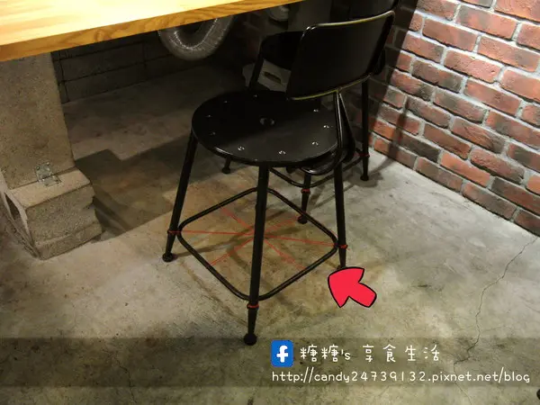 店家在椅子的下方用繩子綁成米字狀,讓顧客放置包包,還蠻有創意的
