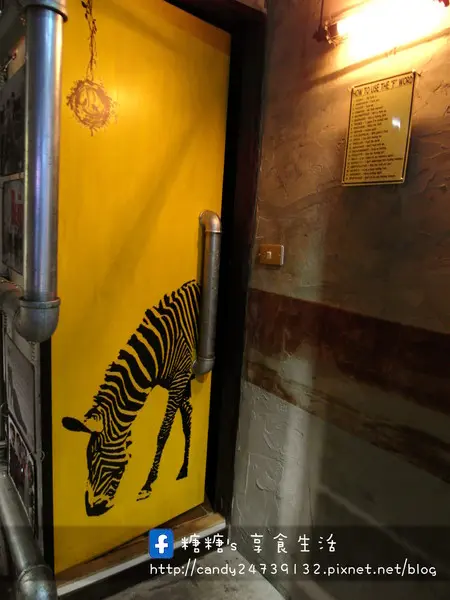 爵的廁所在後方靠牆處,門上一隻斑馬的圖案,看起來有點像機房的入口