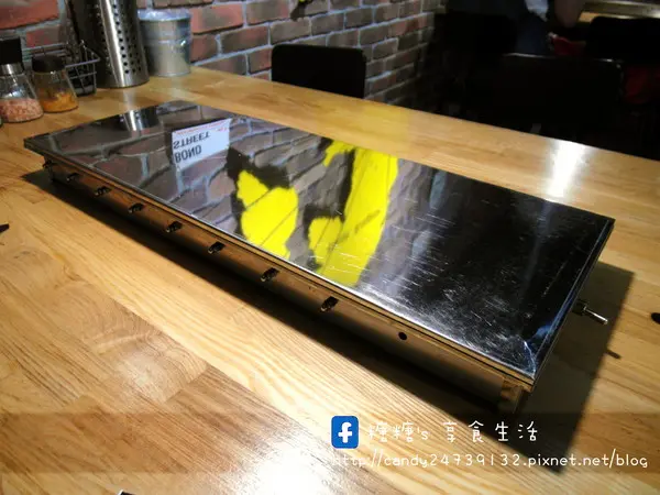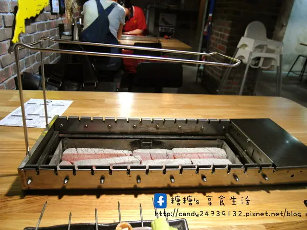 每個位子上都有一個長方形的烤爐,與一般燒烤店用的圓形烤爐不太一樣噢