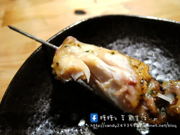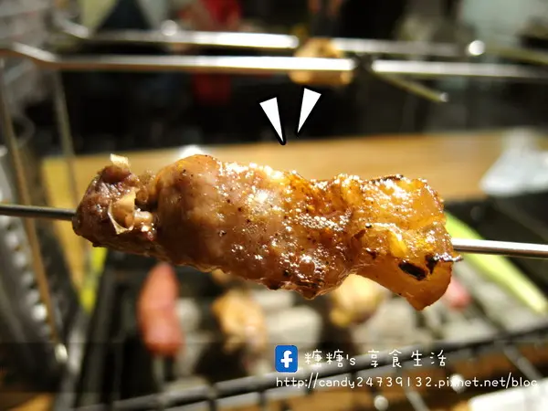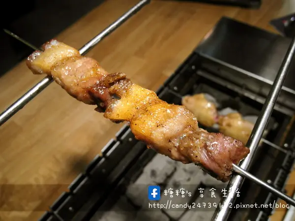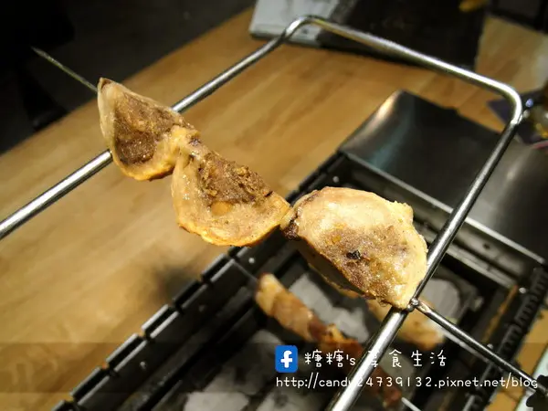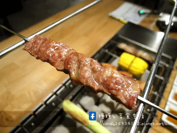 安格斯牛小排 60元 這道安格斯牛小排是來店必點的人氣商品,也是今日串燒中的第一名 外表長條狀的模樣像極了牛肋條,其實是牛小排來著,光看那水嫩嫩的表面就知道很多汁果然一咬下去,裡面的肉汁真的是用噴的,不只是多汁而已,牛小排的肉質更是嫩到不行還有那股讓人意猶未盡的牛肉香,至今還難以忘懷,不愧是店裡人氣商品,來者必點阿 安格斯牛肋 50元 這切成塊狀的牛肉才是牛肋,糖糖一直以為這才是牛小排(只會吃不會認) 牛肋的肉質一樣香氣十足,入口盡是滿滿的牛肉香,口感上較有嚼勁些,建議不要烤太老如果過熟的話,肉質會變得較乾柴,咬勁也會像口香糖一樣,要無止盡的咀嚼著 松阪豬 50元 松阪豬切成骰子的造型,口感軟嫩,與一般較脆口的松阪豬不太一樣