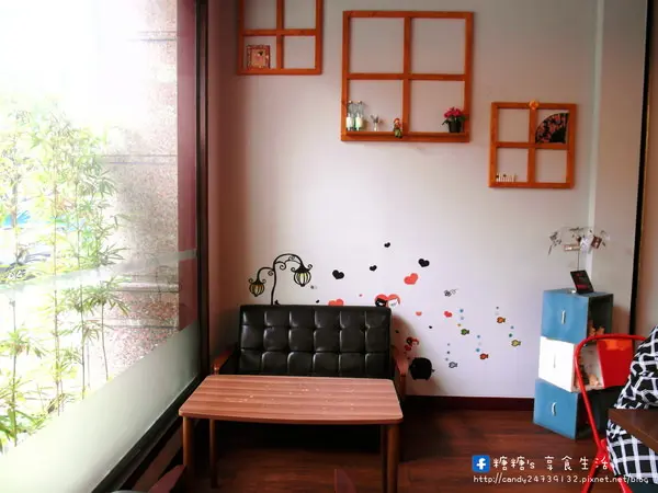 邊還有舒適的沙發座椅,加上背後可愛的壁貼,有種回到家的感覺