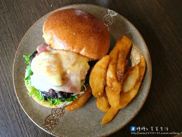 除了抹茶厚鬆餅外,糖糖覺得小豚的起司漢堡也不錯,漢堡皮好吃,加價的套餐也很優