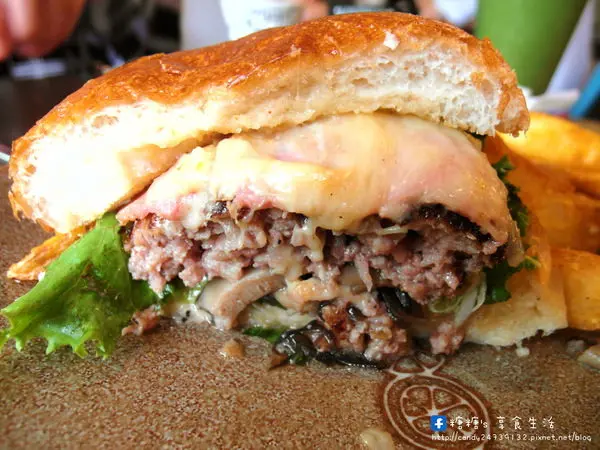 內餡牛肉吃起來超juicy,搭配三種不同起司、野菇、培根及生菜