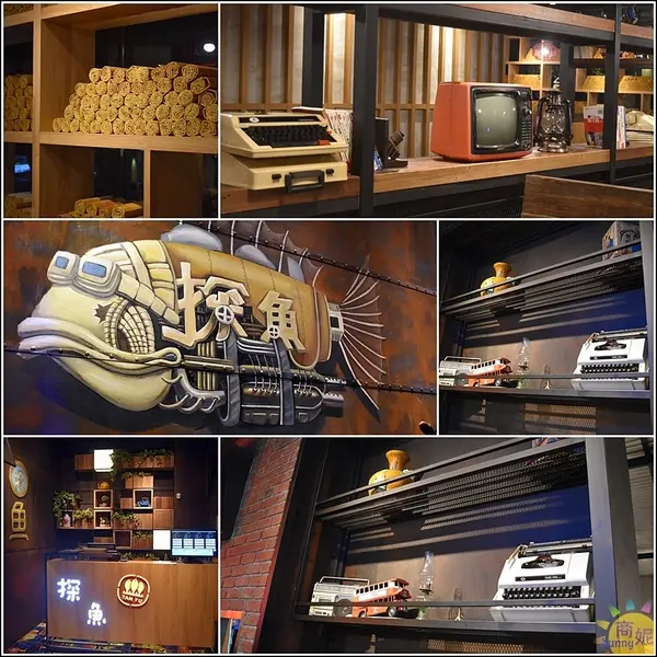 兩個樓層都非常有特色,充滿了文藝與懷舊的氣氛,牆面及地板有可愛的塗鴉壁畫,每一個角落都是IG拍照打卡的地點,非常有特色。探魚在大陸有上百家分店,台中店是目前台灣的唯一一家分店,保留了大陸的特色與原汁原味,店內許多擺設都是從大陸直接帶過來,有去吃過大陸探魚的朋友就知道。