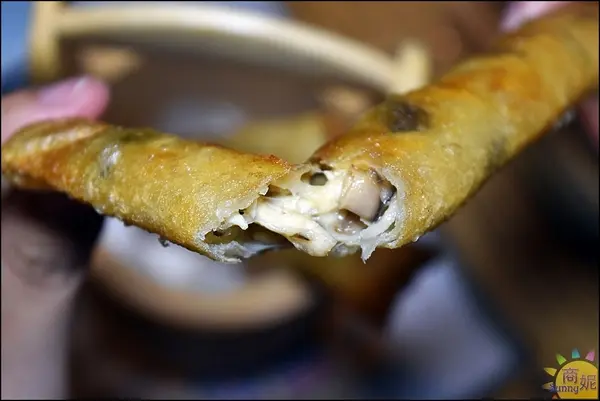 咬開酥脆的春捲皮,裡頭有香菇、雞肉、筍子以及起司,熱熱吃可以吃到起司融化牽絲的口感,第一道開胃菜就留下好印象。