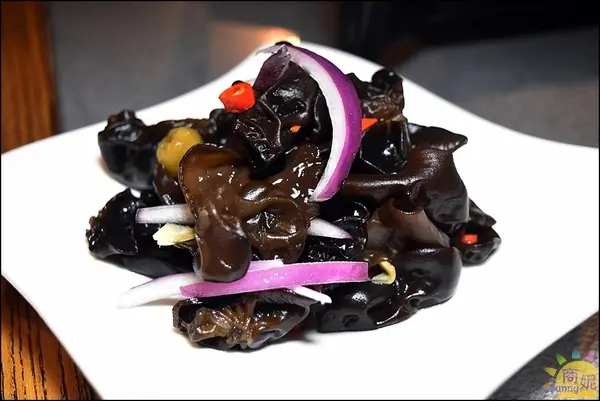 這道涼拌菜很費工,使用雲耳加入野山椒及特調醬汁醃6小時才能入味,鹹辣中帶有醋溜風味,口感很脆相當爽口。