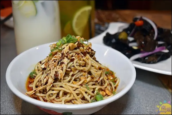 使用關係企業段純貞的麵條,手工麵條Q彈,巴附大量的辣油及辣椒等辛香料,味道很香,辣度溫和不會嗆口,不過蠻多油的商妮一碗吃不完。