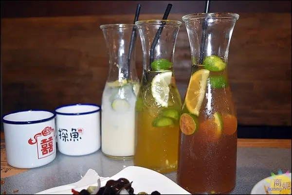 只喝檸檬紅茶實在不過癮,我們又點了檸檬冰桔茶、、還有檸桔紅茶,每一大壺都是100元。酸酸甜甜的滋味很解辣,三種口味商妮最喜歡檸檬檸檬乳酸菌,另兩壺中除了金桔外還加了話梅,味道偏甜比較不合商妮的胃口。