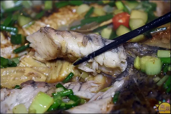 醬香味吃起來有點像紅燒魚但是做法不太一樣,這道的蓋椒料有韭菜、青蔥、小黃瓜,鹹甜醬汁淋在烤魚上面,味道雖然沒有前一道鮮青椒那麼重口味,但也是甘甜好吃。