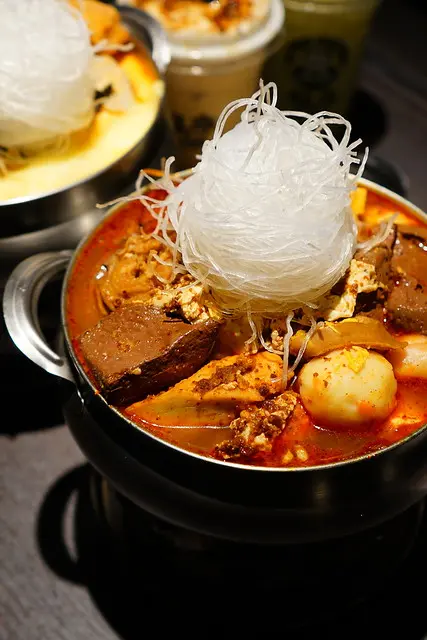 出餐速度一直都很快,總是能馬上滿足我們飢腸轆轆的胃,每鍋都會附有放了魚鬆的白飯和冬粉,放了酥脆魚鬆的白飯也是他們家最大的特色,只有他們家獨有,年輕時自己都能嗑上一整碗,現在不敢吃太多白飯了,吃一兩口解解饞就好