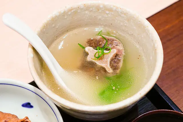 上回也有出現在壽喜燒套餐裡的清燉牛尾湯,是加了清酒下去燉煮的,所以風味特殊,蠻清甜的,牛尾湯也可以續碗的