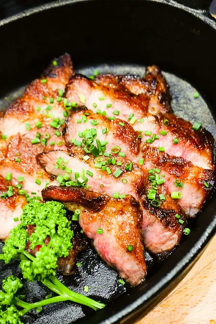肋眼菲力也就是所謂的肋眼心,就是大家耳熟能詳的老饕牛排,他擁有菲力的軟嫩但同時又有肋眼的嚼勁 ,炭烤過後的肋眼菲力有濃厚的肉香與肉汁,表層烤成了焦糖色帶著薄薄的脆感,比起880元的炭燒美國頂級牛小排套絕對有過之而無不及,來樂軒點這道炭燒美國頂級肋眼菲力就對了