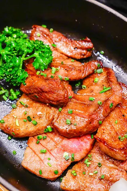炭烤的厚牛舌脆中帶嫩,烤到六七分熟帶點粉嫩度最最美味,太生我又會怕,樂軒烤的剛剛好,我好喜歡