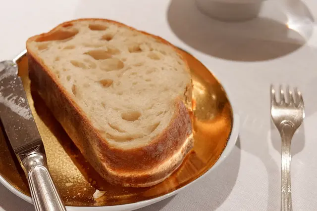 第二塊麵包上桌後我只敢吃掉我愛的脆皮,我也要戒澱粉啦!不然都瘦不下來