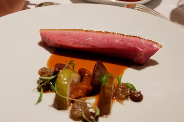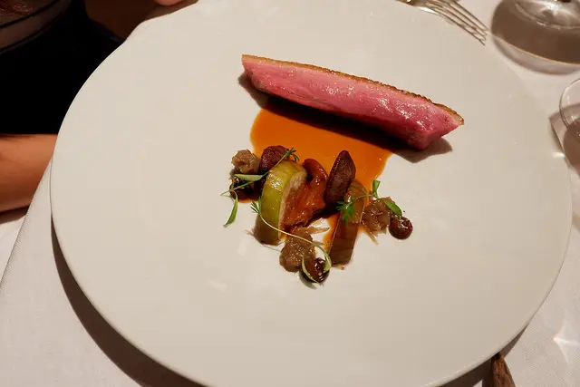 我們一至認為這鴨肉烹調的外酥內嫩太好吃了,配菜部分我也喜歡,是用新鮮無花果搭配鴨胗、鴨舌和洋蔥做成的