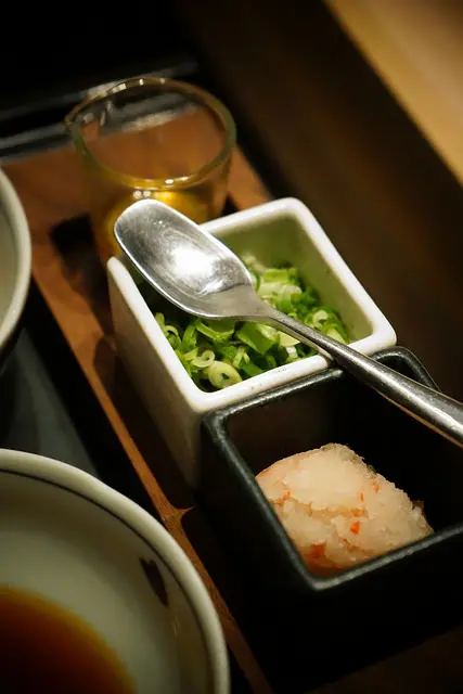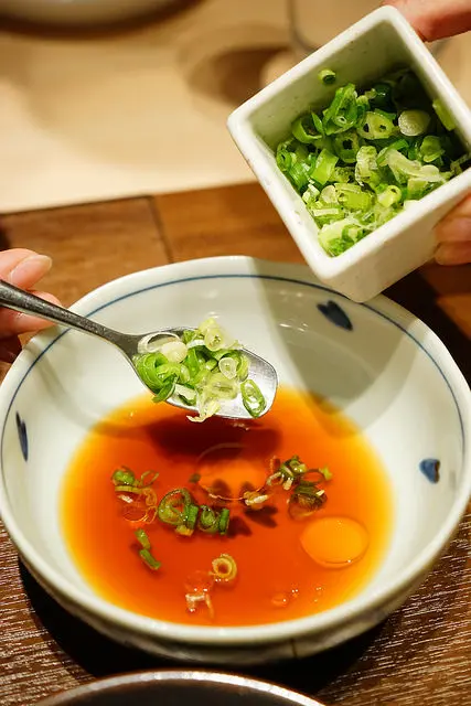 可自行添加香而微辣的特製辣油、蔥花與蘿蔔泥