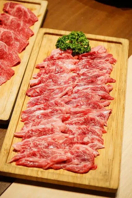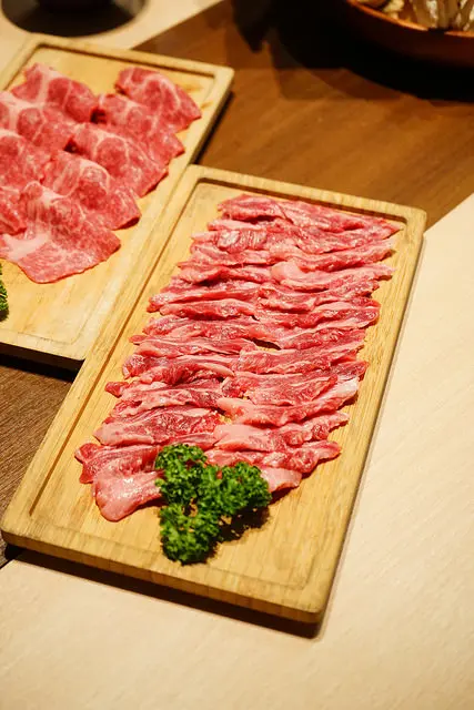 今天午餐和牛吃到飽提供的三種部位,牛肩卷、牛板腱、牛肋條,我最喜歡的部位大概就是牛肋條了,他軟中帶脆有點像牛小排的口感超好吃,我們邊吃邊說今天的肉品的部位好像也很適合拿來燒烤,用烤的吃,那油脂那焦香一定很棒