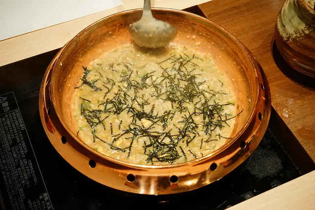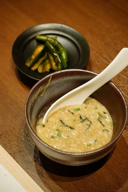 再搭上自製醬菜,我真的很愛這一味,他們家燒烤的醬菜也好好吃,明明剛剛還喊著吃和牛吃的超飽,但雜炊一上桌我依然吃光光
