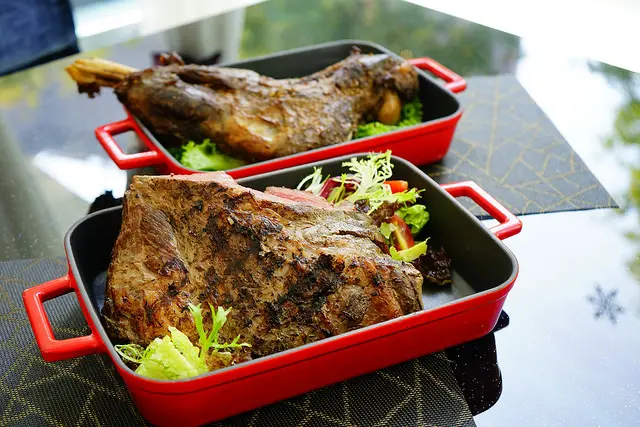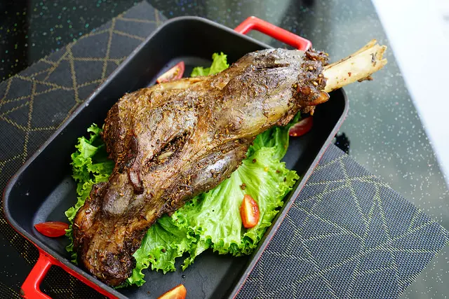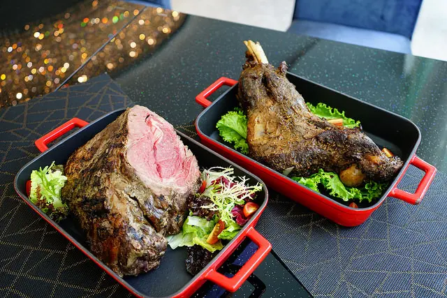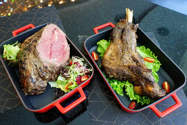 主菜有這三種選擇,我們當然是選擇英式烤牛肉了,隔壁桌的人點了孜然烤羊腿,順便跟他借來拍個照XDDD
