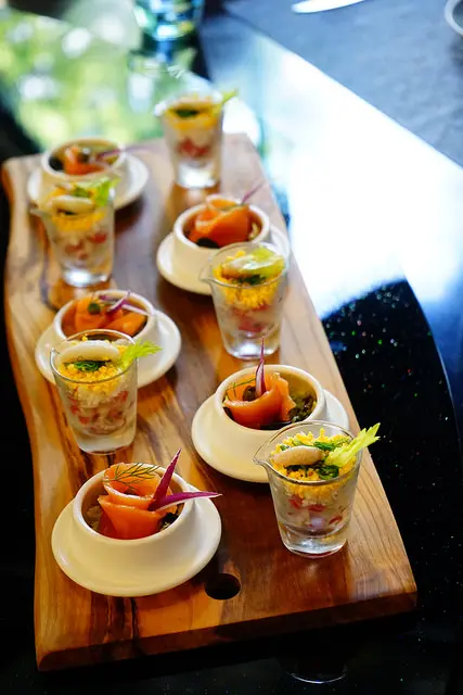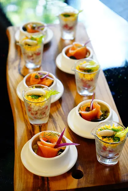 自製燻鮭魚搭香蔥鮪魚蟹肉塔