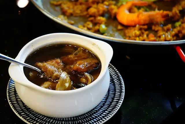 西班牙人在家族親友聚餐時都會出現的一道料理,非常適合今日家庭聚餐的主題,豐盛誘人的海鮮排的滿滿的,每一粒米飯都浸潤了這些海鮮鮮美的湯汁,每一口都有滋有味