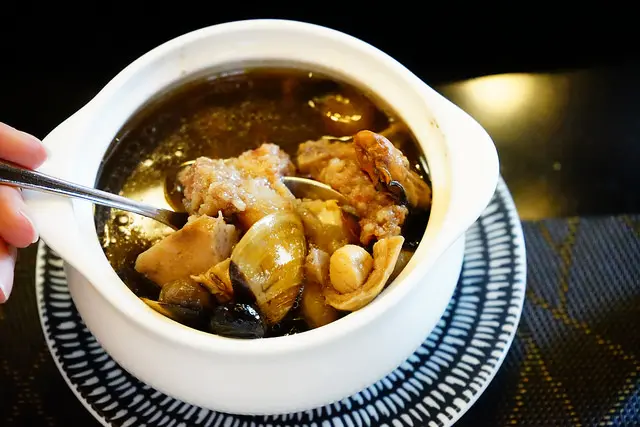 大夥都說喝了這碗就都飽足了吧!看看這一碗的真材實料,燉煮的好軟的芋頭、排骨、香菇、栗子、干貝,真的是湯鮮味美,傳統桌菜怎麼可以少的了這一味