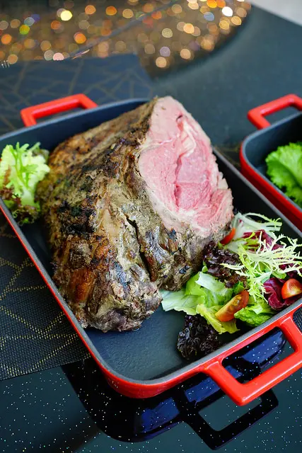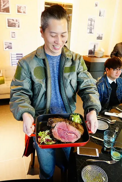 將近6磅=96盎司的超大塊英式烤牛肉,就跟一塊枕頭一樣大,首先會像這樣端出來讓我們拍照看看熟度可不可以