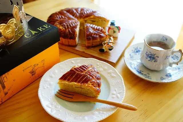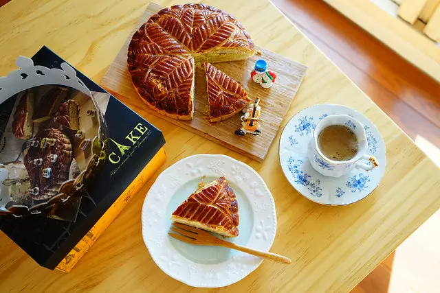 法國人通常會從聖誕節一路過到元旦新年再過到一月六號的主顯節,連續兩個禮拜的假期,從11月開始,在法國街頭可看到大大小小的國王派漂亮的陳列在糕餅店,國王派就是皇冠杏仁派,通常在派中間會藏有小瓷偶或者是傳統的蠶豆,而吃到小瓷偶的人就是那個幸運的國王,要戴上皇冠(去法國的糕餅店買國王派就會送一個紙做的皇冠)代表新的一年都會很幸運,就有點像我們吃元寶包錢幣的意思一樣吧!討個好彩頭