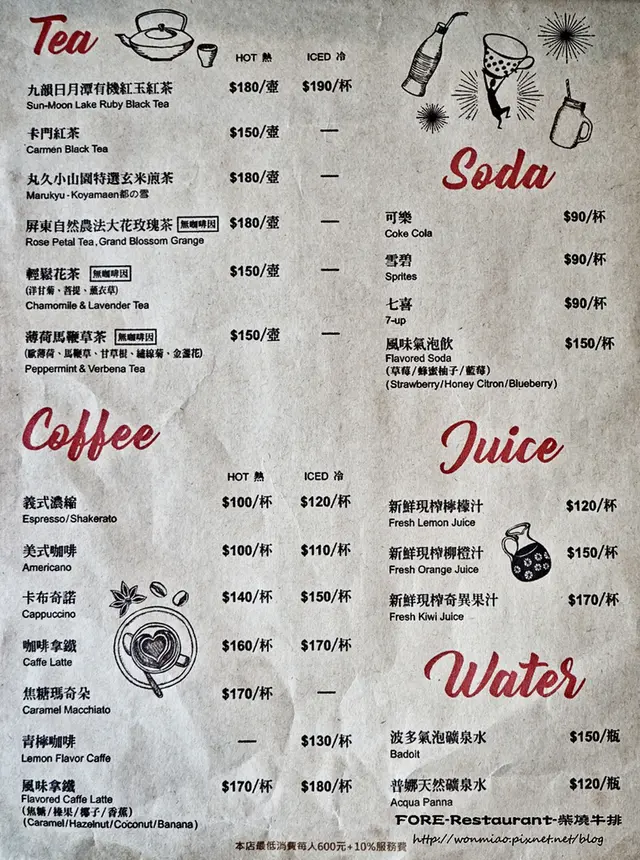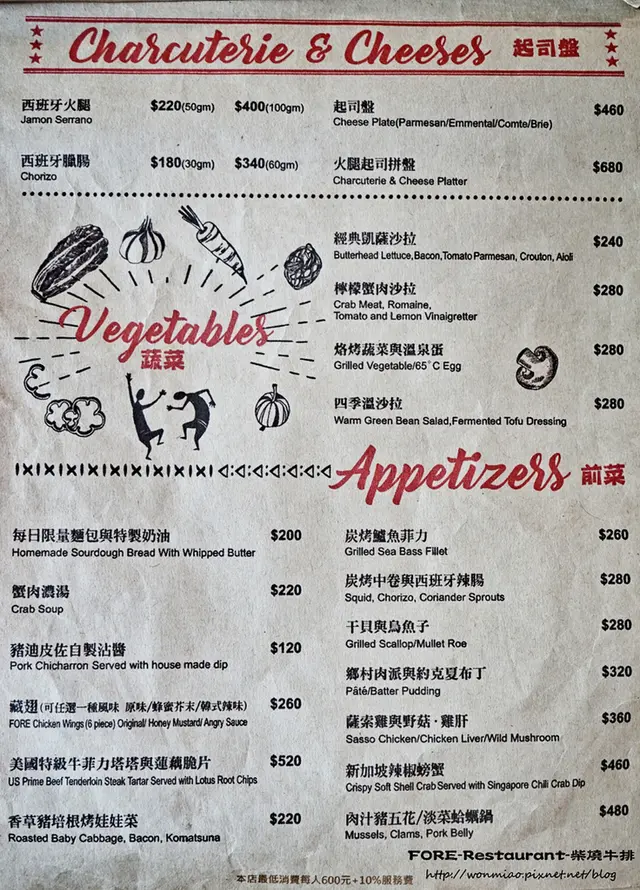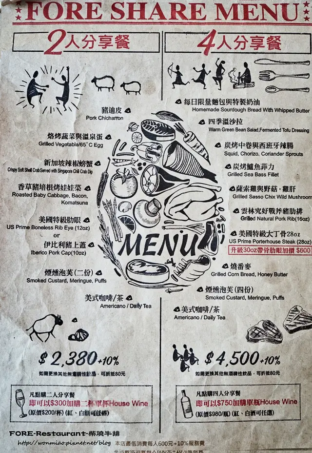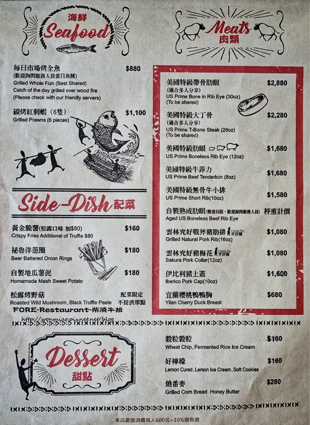 最後附上FORE-Restaurant-柴燒牛排的菜單,有興趣的朋友們可以參考參考!