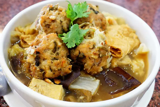 加入福菜的獅子頭在肉汁中多了一點點福菜特殊的香氣,不會很顯眼,淡淡的,