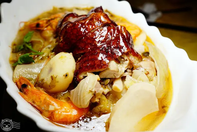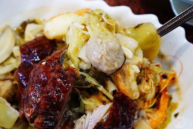 大大缽的盆菜看起來好滿,最上面的燒鴨好閃,讓星羽猛流口水,