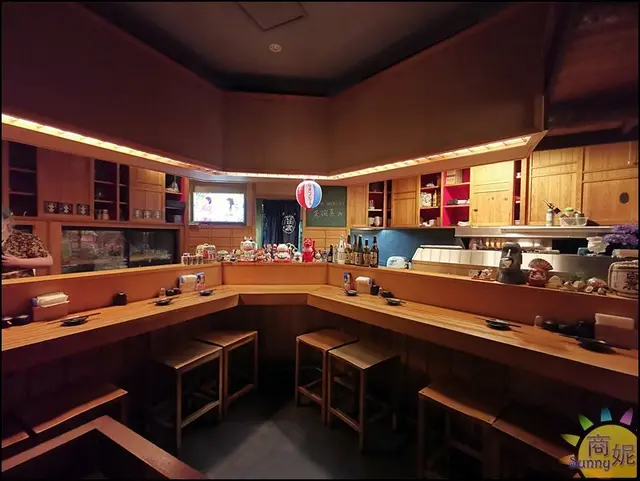 穿過兩側包廂走到最裡頭是吧台區,坐在這裡可以一邊欣賞料理秀一邊跟店員聊天,即使一個人來用餐也很愉快。座位不多記得先預約才不會久等喔~