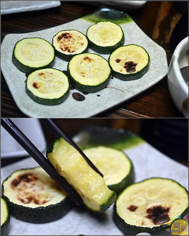 厚切的櫛瓜烤過後保留水份,咬開來又脆又有甜度,清清爽爽好好吃,這裡的串烤功夫蠻厲害的。不過同樣價位,我覺得山葵章魚更超值。