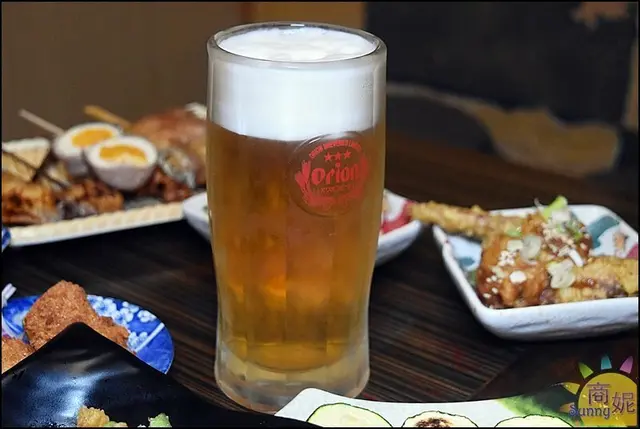 這裡的酒類不少,我們點ORION生啤酒來喝,上頭綿密的氣泡完美的比例,好喝又不會苦,搭配各種串烤下酒菜,美食加美酒好享受!(警語:未成年請勿飲酒、嚴禁酒駕)