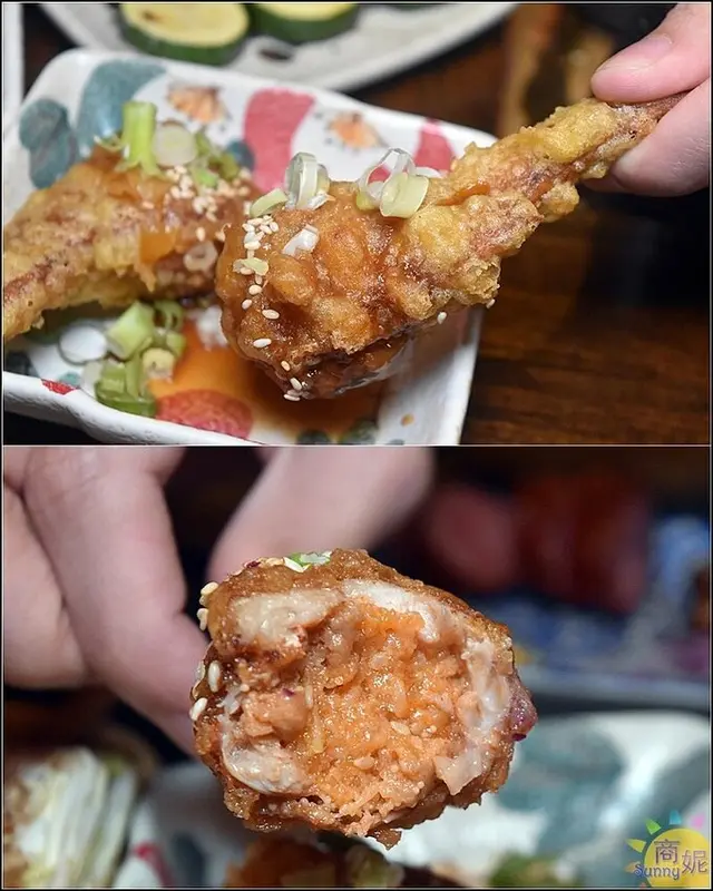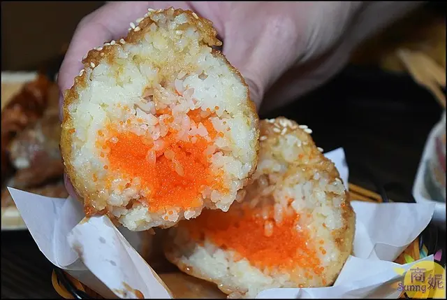 這一道炸飯糰相當特別,切開來看裡頭包了好多紅魚卵,波滋波茲的口感滿嘴海味很過癮,一大顆吃完會有飽足感。